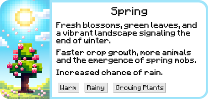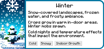 Discover additional screenshots on our wiki. Plus, enjoy a showcase of seasonal biomes featured in the artwork throughout this page!